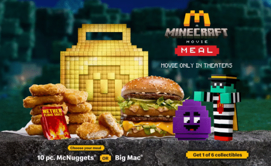 Dig into A Minecraft Movie Meal Ready to fill your inventory? Check out A Minecraft Movie Meal featuring 1 of 6 limited edition collectibles.* Pick a 10 pc. Chicken McNuggets® to try spicy Nether [ . . . ]
